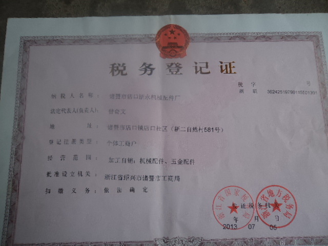 [原] 恭喜我们厂名改为:诸暨市店口浙永机械配件厂